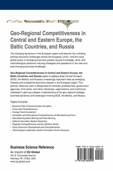 The changing dynamics in the European region and beyond, the unfolding political-economic challenges across the European Union, and the rising global power of emerging economic powers require knowledge, skills, and methodological platforms inducing strategies and operations in the new and ever-changing business landscape. Geo-Regional Competitiveness in Central and Eastern Europe, the Baltic Countries, and Russia seeks to address East Central Europe's (ECE), the Baltics', and Russia's increasingly important roles as emerging markets and competitive economic players in the European region. This premier reference work is designated for scholars, professionals, government agencies, think tanks, and other individuals, organizations, and institutions interested in gaining a deeper understanding of the geo-regional strategic business dynamics and landscape involving ECE, the Baltics, and Russia.