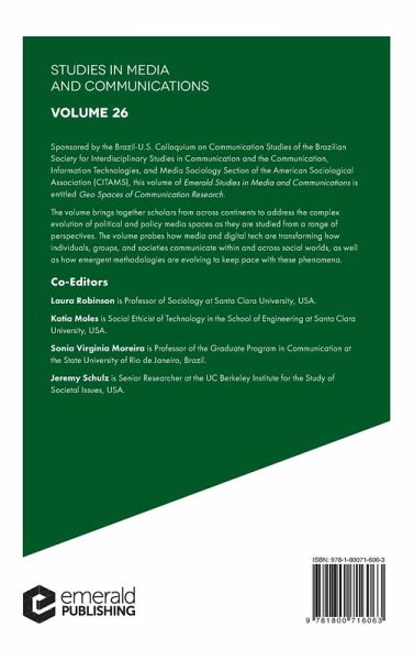 Sponsored by the Brazil-U.S. Colloquium on Communication Studies of the Brazilian Society for Interdisciplinary Studies in Communication and the Communication, Information Technologies, and Media Sociology Section of the American Sociological Association (CITAMS), this volume of Studies in Media and Communications is entitled Geo Spaces of Communication Research. The volume brings together scholars from across the Americas to address the complex evolution of political and policy media spaces as they are studied from a range of perspectives. The volume probes how media and digital tech are transforming how individuals, groups, and societies communicate within and across social worlds, as well as how emergent methodologies are evolving to keep pace with these phenomena.