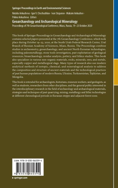 This book of Springer Proceedings in Geoarchaeology and Archaeological Mineralogy contains selected papers presented at the 7th Geoarchaeology Conference, which took place during October 19-23, 2020, at the South Urals Federal Research Center, Ural Branch of Russian Academy of Sciences, Miass, Russia. The Proceedings combine studies in archeometry, geoarchaeology, and ancient North Eurasian technologies, including paleometallurgy, stone tools investigation, past exploitation of geological resources, bioarchaeology, residue analysis, pottery, and lithics studies. This book also specializes in various non-organic materials, rocks, minerals, ores, and metals, especially copper and metallurgical slags. Many types of research also use modern analytical methods of isotopic, chemical, and mineralogical analysis to address the composition and structure of ancient materials and the technological practices of past human populations of modern Russia, Ukraine, Turkmenistan, Tajikistan, and Mongolia.