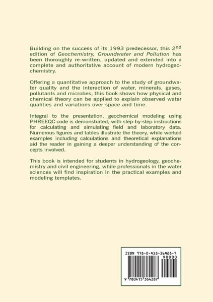Building on the success of its 1993 predecessor, this second edition of Geochemistry, Groundwater and Pollution has been thoroughly re-written, updated and extended to provide a complete and authoritative account of modern hydrogeochemistry. Offering a quantitative approach to the study of groundwater quality and the interaction of water, minerals, gases, pollutants and microbes, this book shows how physical and chemical theory can be applied to explain observed water qualities and variations over space and time. Integral to the presentation, geochemical modelling using PHREEQC code is demonstrated, with step-by-step instructions for calculating and simulating field and laboratory data. Numerous figures and tables illustrate the theory, while worked examples including calculations and theoretical explanations assist the reader in gaining a deeper understanding of the concepts involved. A crucial read for students of hydrogeology, geochemistry and civil engineering, professionals in the water sciences will also find inspiration in the practical examples and modeling templates.