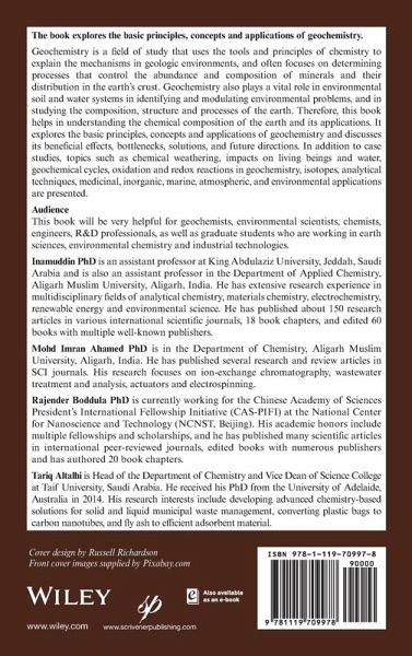 This book aims to explore basic principles, concepts and applications of geochemistry. Topics include chemical weathering, impacts on living beings and water, geochemical cycles, oxidation and redox reactions in geochemistry, isotopes, analytical techniques, medicinal, inorganic, marine, atmospheric, and environmental applications, as well as case studies. This book helps in understanding the chemical composition of the earth and its applications. It also includes beneficial effects, bottlenecks, solutions, and future directions in geochemistry.