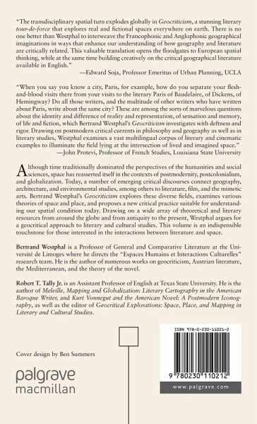 Geocriticism provides a theoretical foundation and a critical exploration of geocriticism, an interdisciplinary approach to understanding literature in relation to space and place. Drawing on diverse thinkers, Westphal argues that a geocritical approach enables novel ways of seeing literary texts and of conducting literary studies.