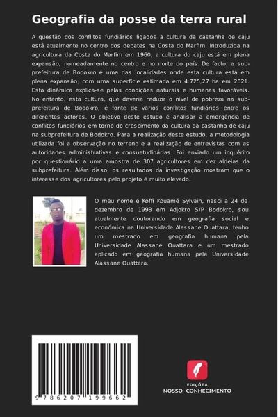 A questão dos conflitos fundiários ligados à cultura da castanha de caju está atualmente no centro dos debates na Costa do Marfim. Introduzida na agricultura da Costa do Marfim em 1960, a cultura do caju está em plena expansão, nomeadamente no centro e no norte do país. De facto, a sub-prefeitura de Bodokro é uma das localidades onde esta cultura está em plena expansão, com uma superfície estimada em 4.725,27 ha em 2021. Esta dinâmica explica-se pelas condições naturais e humanas favoráveis. No entanto, esta cultura, que deveria reduzir o nível de pobreza na sub-prefeitura de Bodokro, é fonte de vários conflitos fundiários entre os diferentes actores. O objetivo deste estudo é analisar a emergência de conflitos fundiários em torno do crescimento da cultura da castanha de caju na subprefeitura de Bodokro. Para a realização deste estudo, a metodologia utilizada foi a observação no terreno e a realização de entrevistas com as autoridades administrativas e consuetudinárias. Foi enviado um inquérito por questionário a uma amostra de 307 agricultores em dez aldeias da subprefeitura. Além disso, os resultados da investigação mostram que o interesse dos agricultores pelo projeto é muito elevado.