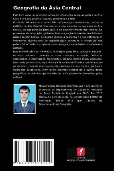 Este livro cobre as principais áreas de informação sobre os países da Ásia Central e o seu potencial natural, económico e social.O século XXI assistiu a uma série de mudanças económicas, sociais e políticas na Ásia Central. Isto teve um efeito profundo na economia da Ásia Central, na geografia da população, e no desenvolvimento das regiões. Os processos de integração, globalização e integração têm-se desenvolvido nos países da Ásia Central. A situação política, a economia e a sua estrutura, os indicadores quantitativos de especialização mudaram, a integração dos países foi formada, e surgiram novas alianças e associações económicas e políticas.Este manual cobre as fronteiras, localização geográfica, condições naturais, recursos naturais, minerais e suas reservas, economia, indústria, exportações e importações, transportes, produto interno bruto, população, densidade populacional, agricultura na Ásia Central. É dada especial atenção às características do desenvolvimento económico e aos mapas, gráficos e diagramas estatísticos. Além disso, algumas estatísticas e outros dados geográficos económicos podem não ser suficientemente fornecidos pelos autores.