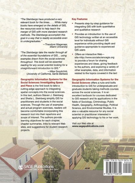 'The Steinbergs have produced a very relevant book for the times. . . . While many books have emerged on the details of GIS, few resources exist to help teach the merger of GIS with more standard research methods. The Steinbergs accomplish this goal in a way that is readily accessible even to undergraduates.'ùTheodore Wagenaar, Miami Universityáá 'The Steinbergs take the reader through all of the essential foundations of GISà using examples drawn from the social sciences throughout. This book will be essential reading for any social scientist looking for a straightforward introduction to GIS.'ùMike Goodchild, University of California, Santa Barbaraáá Geographic Information Systems for the Social Sciences: Investigating Space and Place is the first book to take a cutting-edge approach to integrating spatial concepts into the social sciences. In this text, authors Steven J. Steinberg and Sheila L. Steinberg simplify GIS (Geographic Information Systems) for practitioners and students in the social sciences through the use of examples and actual program exercises so that they can become comfortable incorporating this research tool into their repertoire and scope of interest. The authors provide learning objectives for each chapter, chapter summaries, links to relevant Web sites, as well as suggestions for student research projects.áá Key Features:Presents step-by-step guidance for integrating GIS with both quantitative and qualitative research Provides an introduction to the use of GIS technology written at an accessible level for individuals without GIS experience while providing depth and guidance appropriate to experienced GIS usersá Offers an associated interactive Web siteùhttp:/www.socialsciencegis.orgùto provide a forum for sharing experience and ideas, input to the authors, and a variety of other examples, data, and information related to the topics covered in the text Geographic Information Systems for the Social Sciences offers a nuts-and-bolts introduction to GIS for undergraduate and graduate students taking methods courses across the social sciences. It is an excellent textbook for courses dedicated to GIS research and its applications in the fields of Sociology, Criminology, Public Health, Geography, Anthropology, Political Science, and Environmental Studies. It is also a valuable resource for any social scientist or practitioner interested in applying GIS technology to his or her work.An Instructor's Resource CD, containing PowerPoint slides, test questions, and suggested Web site links,áamong other items, is also availableáto all professors adopting this text.