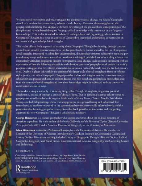 Without social movements and wider struggles for progressive social change, the field of Geography would lack much of its contemporary relevance and vibrancy. Moreover, these struggles and the geographical scholarship that engages with them have changed the philosophical underpinnings of the discipline and have inflected the quest for geographical knowledge with a sense not only of urgency but also hope. This reader, intended for advanced undergraduate and beginning graduate courses in Geographic Thought, is at once an analysis of Geography's theoretical and practical concerns and an encounter with grounded political struggles. This reader offers a fresh approach to learning about Geographic Thought by showing, through concrete examples and detailed editorial essays, how the discipline has been forever altered by the rise of progressive social struggles. Structured to aid student understanding, the anthology presents substantive main and part introductory essays and features more than two dozen unabridged published works by leading scholars that emphatically articulate geographic thought to progressive social change. Each section is introduced with an explanation of how the following pieces fit into the broader context of geographic work amidst the socially progressive struggles that have altered social relations in various parts of the world over the last half-century or so. Doubly, it places this work in the context of the larger goals of social struggles to frame or reframe rights, justice, and ethics. Geographic Thought provides readers with insights into the encounters between scholarship and practice and aims to prompt debates over how social and geographical knowledges arise from the context of social struggles and how these knowledges might be redirected at those contexts in constructive, evaluative ways. The reader is unique not only in knowing Geographic Thought through its progressive political attachments, instead of through a series of abstract "isms", but in gathering together salient works by geographers as well as scholars in cognate fields, such as Nancy Fraser, Chantal Mouffe, Iris Marion Young, and Jack Kloppenberg, whose own engagements have proved lasting and influential. For researchers and students interested in the connections between theoretically informed work and the possibilities for bettering people's everyday lives, this book provides an innovative and compelling argument for why Geographic Thought is valuable and necessary.