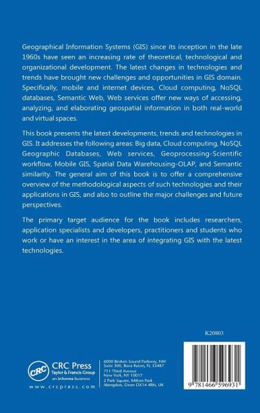 Web services, cloud computing, location based services, NoSQLdatabases, and Semantic Web offer new ways of accessing, analyzing, and elaborating geo-spatial information in both real-world and virtual spaces. This book explores the how-to of the most promising recurrent technologies and trends in GIS, such as Semantic GIS, Web GIS, Mobile GIS, NoSQL Geographic Databases, Cloud GIS, Spatial Data Warehousing-OLAP, and Open GIS. The text discusses and emphasizes the methodological aspects of such technologies and their applications in GIS.