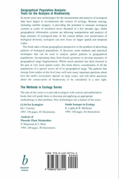 Conservation biology -- using concepts from traditional resource management and modern population biology to preserve biological diversity -- has emerged as one of the most important areas of ecology In order to really understand the problems of decreasing diversity and the solutions to maintaining it, the attention of ecologists must be focused on larger spatial and temporal scales than they are used to. The book discusses methods and statistical techniques that can be used to analyze spatial patterns in geographic populations. These techniques incorporate ideas from fractal geometry to develop measures of geographic range fragmentation, and can be used to ask questions regarding the conservation of biodiversity.
