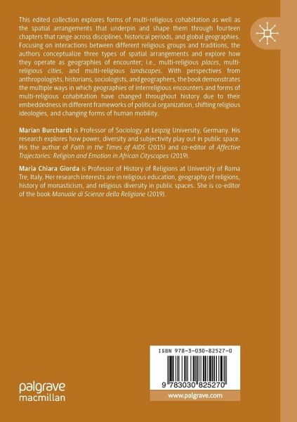 1. Geographies of Encounter: The Making and Unmaking of Multi-Religious Spaces.- Part I: Multi-Religious Cities.- 2. Unholy Religious Encounters and the Development of Jerusalem's Urban Landscape: Between Particularism and Exceptionalism.- 3. Ancient Rome: The Shrinking and Growth of Religious Diversity in a Cosmopolitan City.- 4. A Pagan Temple, a Martyr Shrine, and a Synagogue in Daphne: Sharing Religious Sites in Fourth Century Antioch.- 5. Constantinople as a (Unwilling) Multireligious Space (330-1453).- 6. Religious Diversity and the Long Nineteenth Century: Exploring Port Cities.- Part II: Multi-Religious Places.- 7. Cohabiting in an Imaginary Space: Ancient Jewish and Christian Representations of the Temple and the Tabernacle.- 8. Touristification as a Strategy for Peaceful Coexistence: The Case Study of the Sveti Naum Monastery (Macedonia).- 9. The Interreligious Complex at Vulcana-Ba i in Romania: A Multi-Religious Place Between Idealism and Pragmatism.- 10. The "Casa delle religioni" of Turin: A Multi-Level Project Between Religious and Secular.- 11. Multi-Religious Places by Design: Space, Materiality, and Media in Berlin's House of One.- Part III: Multi-Religious Landscapes.- 12. The Veneration of St. Yared: A Multireligious Landscape Shared by Ethiopian Orthodox Christians and the Betä sra el (Ethiopian Jews).- 13. A Shared Holy Landscape: The Reactualization of Egypt's Sacred History and Geography in Medieval Islamic Thought.- 14: Spatial Arrangements for Conviviality: The Garden of Faiths as a Multi-Religious Landscape in Germany.