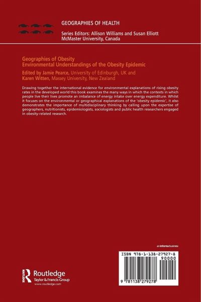 I: Introduction 1: Bringing a Geographical Perspective to Understanding the 'Obesity Epidemic' 2: The Emerging Obesity Epidemic: An Introduction 3: Contextual Determinants of Obesity: An Overview II: Food Environment and Obesity (Energy In) 4: Changing Food Environment and Obesity: An Overview 5: Understanding the Local Food Environment and Obesity 6: Childhood Obesity and the Food Environment III: Physical Activity, Environment and Obesity (Energy Out) 7: The Role of the Changing Built Environment in Shaping Our Shape 8: Understanding the Local Physical Activity Environment and Obesity 9: Childhood Obesity, Physical Activity and the Physical Environment IV: Obesogenic Environments and Policy Responses 10: Policy Responses and Obesogenic Food Environments 11: Policy Responses and the Physical Environment V: Future Research Challenges 12: Residential Environments and Obesity - Estimating Causal Effects 13: Measuring Obesogenic Environments - Representing Place in Studies of Obesity 14: Recourse to Discourse: Talk and Text as Avenues to Understand Environments of Obesity VI: Conclusions 15: Conclusions: Common Themes and Emerging Questions
