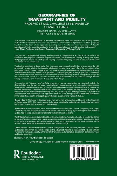 'The authors draw on their wealth of research expertise to show that transport and mobility can't be understood in isolation from broader social, economic and environmental processes, and that geography has to be at the heart of any approach to making transport better and more sustainable. A thought-provoking text that is essential reading for anyone studying, planning or making policy for transport.' - Jon Shaw, Professor and Head of Geography, University of Plymouth