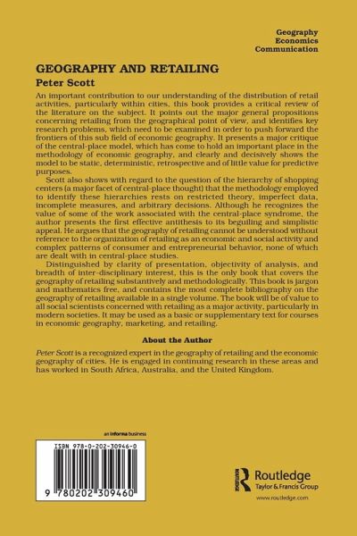 Providing an understanding of the distribution of retail activities, particularly within cities, this book provides a critical review of the literature on the subject. It points out the major general propositions concerning retailing from the geographical point of view, and identifies key research problems.