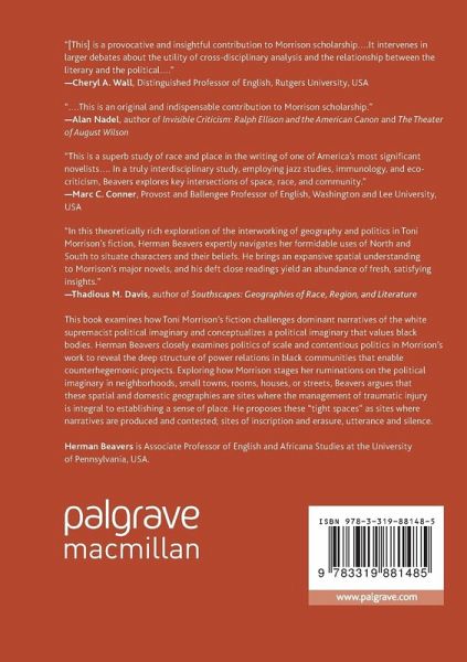 This book examines Toni Morrison's fiction as a sustained effort to challenge the dominant narratives produced in the white supremacist political imaginary and conceptualize a more inclusive political imaginary in which black bodies are valued. Herman Beavers closely examines politics of scale and contentious politics in order to discern Morrison's larger intent of revealing the deep structure of power relations in black communities that will enable them to fashion counterhegemonic projects. The volume explores how Morrison stages her ruminations on the political imaginary in neighborhoods or small towns; rooms, houses or streets. Beavers argues that these spatial and domestic geographies are sites where the management of traumatic injury is integral to establishing a sense of place, proposing these "tight spaces" as sites where narratives are produced and contested; sites of inscription and erasure, utterance and silence.