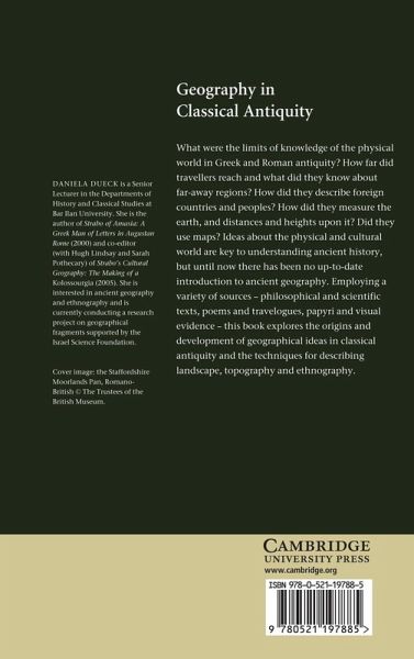 What were the limits of knowledge of the physical world in Greek and Roman antiquity? How far did travellers get and what did they know about far-away regions? How did they describe foreign countries and peoples? How did they measure the earth, and distances and heights on it? Ideas about the physical and cultural world are a key aspect of ancient history, but until now there has been no up-to-date modern overview of the subject. This book explores the beginnings and development of geographical ideas in Classical antiquity and demonstrates technical methods for describing landscape, topographies and ethnographies. The survey relies on a variety of sources: philosophical and scientific texts but also poems and travelogues; papyrological remains and visual monuments.