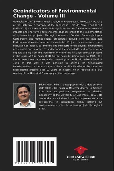 Geoindicators of Environmental Change in Hydroelectric Projects: A Reading of the Historical Geography of the Landscape - Rio do Peixe I and II SHP (1925-2016) - Volume III deals with significant issues for the assessment of impacts and short-cycle environmental changes linked to the implementation of hydroelectric projects. Through the use of Detailed Geomorphological Cartography and methodological procedures derived from the Integrated Environmental Assessment of Hydroelectric Projects, measurements and evaluation of indices, parameters and indicators of the physical environment are carried out in order to understand the magnitude and occurrence of impacts arising from the installation of one of the first hydroelectric projects in the state of São Paulo (PCH Rio do Peixe I), dating back to 1925. This same project was later expanded, resulting in the Rio do Peixe II SHPP in 1998. In this way, it was possible to assess the accumulated transformations in the landscape in the area directly affected by these two hydroelectric projects over 91 years of history, which resulted in a true reading of the Historical Geography of the Landscape.