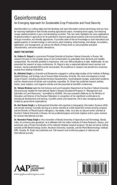 Vishnu D. Rajput, PhD, is working as a Leading Researcher (Associate Professor), Head of the Soil Health Lab at Southern Federal University, Rostov-on-Don, Russia. His ongoing research is based on the toxic effects of bulk- and nano-forms of metals metals on plant physiology, morphology, anatomy, ultrastructure of cellular and subcellular organelles, cytomorphometric modifications, and DNA damage as well as investigating the bioaccumulation, bio/geo-transformations, and uptake. He has published over 20 peer-reviewed full-length articles, 18 books (Springer, Elsevier, CRC Press, Nova USA), 70 book chapters (Scopus indexed), and 44 conference articles. His h-index is 21 by Scopus with 1942 citations as of October 2022. He is an internationally recognized reviewer, with over 200 manuscript reviews and has received an outstanding reviewer certificates from Elsevier, Springer, and Plants-MDPI. He is an editorial board member of various high-impact journals. He is a leader of several grants including a mega grant from BRICS Science, Technology and Innovation Cooperation and a performer/co-principal investigator of several national and international projects. Dr. Rajput has received Certificates of Appreciation 2019 and 2021, a Certificate of Honor 2020, and a Diploma Award 2021 from the Southern Federal University, Russia, for outstanding contribution in academic, creative research, and publication activities. He has also received "Highly Qualified Specialist" status by the Russian government and is included in the list of top 2% of Russian scientists. Abhishek Singh, PhD, is presently a PhD Research Scholar at Sardar Vallabh Bhai Patel University of Agriculture and Technology, Meerut, Uttar Pradesh, India. He has published one book, three edited books, 14 book chapters (several are Scopus indexed), review papers, abstracts and 30 Hindi-English popular articles in different national and international journals and magazines. He presented a poster presentation at the XIV Agricultural Sciences Congress-2019 NASC Complex, ICAR, New Delhi, and an pral presentation at the 5th Global Outreach Conference, Meerut, U.P. He has been a member of different national and international scientific societies of agriculture. He has an integrated MSc in Plant Biotechnology from Sam Higginbottom University of Agriculture, Technology and Sciences (formerly Allahabad Agricultural Institute), Allahabad, India. Tatiana Minkina, PhD, is the Head of Soil Science and Land Evaluation Department of Southern Federal University and also the Head of International Master's Degree Educational Program "Management and Estimation of Land Resources" (2015-2022 years, accreditation by ACQUIN). Her areas of interest include soil science, biogeochemistry of trace elements, environmental soil chemistry, soil monitoring, assessment, modelling, and remediation using physicochemical treatment methods. She was awarded with a Diploma of the Ministry of Education and Science of the Russian Federation in 2015 for her years of long-term work in developing and improving the educational process and for her significant contribution to the training of highly qualified specialists. ?urrently, she is handling projects funded by the Russian Scientific Foundation, the Ministry of Education and Science of the Russian Federation, and the Russian Foundation of Basic Research. She is a member of several scientific bodies, including the Expert Group of the Russian Academy of Science, the International Committee on Contamination Land, Eurasian Soil Science Societies, International Committee on Protection of the Environment, and International Scientific Committee of the International Conferences on Biogeochemistry of Trace Elements. She has made over 750 scientific publications so far, 389 of them in English. She is an invited editor of an open access journal by MDPI Water, an editorial board member of Geochemistry: Environment, Exploration, Analysis; and Eurasian Journal of Soil Science. Anil Kumar Singh, PhD, is currently working at Dehaat Company, Gurugram, India, as a Remote Sensing GIS Research Lead. His research interest includes remote sensing, satellite meteorology, agrometeorology, and hydrology and watershed management. He has been involved in studying remote sensing applications in agriculture. He has published more than 12 publications, including peer-reviewed papers and book chapters. He is also a peer reviewer for several international journals, such as Journal of Hydrologic Engineering, International Journal of Water Resources and Environmental Engineering, Journal of Hydrology, and journals of Royal Meteorological Society. He received his BE degree in Information Technology from the University of Rajasthan, Jaipur, India, and his MTech degree in Remote Sensing and GIS from SHUATS University Prayagraj, Uttar Pradesh, India. Subsequently, he received PG Diploma in Remote Sensing and GIS from IIRS (ISRO), Dehradun, India. He was awarded a PhD degree in Climate Risk Management System for Agriculture from the University of Allahabad, Prayagraj, India. He also worked as a Senior Research Fellow at the India Meteorology Department, India, from 2016 to 2020, while pursuing his education. Narendra Pratap Singh, PhD, is currently working as Vice-chancellor of Banda University of Agriculture and Technology, Banda, Uttar Pradesh, India. He is an eminent pulse geneticist who joined as the new Director of the Indian Institute of Pulses Research, Kanpur, in 2014, where he was instrumental in creating world-class state-of-the-art facilities of biotechnology and a pioneer in the application of tools of biotechnology in pulse improvement in India. Previously, Dr. Singh was coordinating and guiding the national chickpea research program as Project Coordinator (chickpea). He also served as visiting scientist at WA Biotechnology Centre, Murdoch University, Perth, Australia, and the Plant Biotechnology Institute, NRC, Saskatoon, Canada. Dr. Singh served as a membe