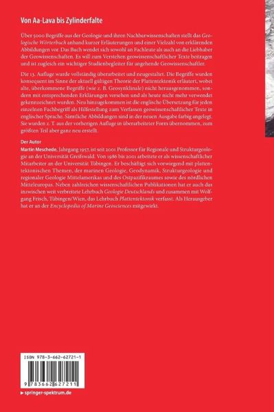 Die 13. Auflage wurde vollständig überarbeitet und neugestaltet. Die Begriffe wurden konsequent im Sinne der aktuell gültigen Theorie der Plattentektonik erläutert, wobei alte, überkommene Begriffe (wie z. B. Geosynklinale) nicht herausgenommen, sondern mit entsprechenden Erklärungen versehen und als heute nicht mehr verwendet gekennzeichnet wurden. Neu hinzugekommen ist die englische Übersetzung für jeden einzelnen Fachbegriff als Hilfestellung zum Verfassen geowissenschaftlicher Texte in englischer Sprache. Sämtliche Abbildungen sind inder neuen Ausgabe farbig angelegt. Sie wurden z. T. aus der vorherigen Auflage in überarbeiteter Form übernommen, zum größten Teil aber ganz neu erstellt.