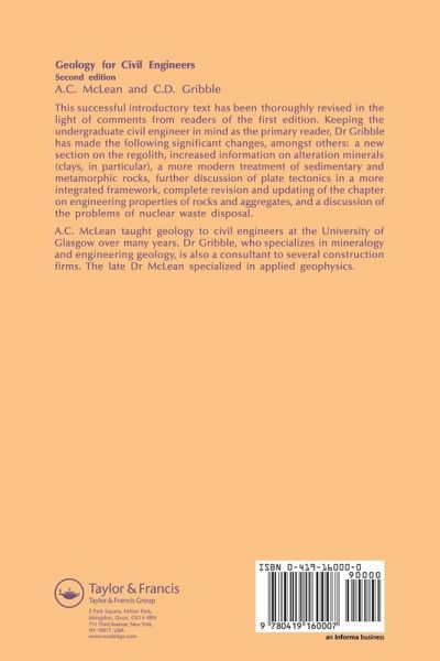 Dr C. Gribble is a former Senior Lecturer and Head of Department in Geology at the University of Glasgow. He is also Consultant to several construction firms, specialising in mineralogy and engineering geology. The late Dr A. McLean was also a Senior Lecturer in Geology at the University of Glasgow, specialising in applied geophysics. He was formerly President of the Geology Society of Glasgow.