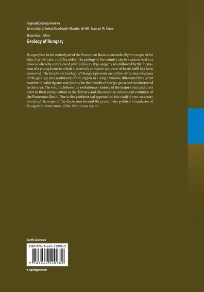 Hungary lies in the central part of the Pannonian Basin, surrounded by the ranges of the Alps, Carpathians, and Dinarides. The geology of the country can be summarized as a process whereby complicated plate collision-type orogeny was followed by the formation of a young basin in which a relatively complete sequence of basin infill has been preserved. The handbook "Geology of Hungary" presents an outline of the main features of the geology and geohistory of the region in a single volume, illustrated by a great number of color figures and photos for the benefit of foreign geoscientists interested in this area. The volume follows the evolutionary history of the major structural units prior to their juxtaposition in the Tertiary and discusses the subsequent evolution of the Pannonian Basin. Due to the geohistorical approach to this study it was necessary to extend the scope of the discussion beyond the present-day political boundaries of Hungary, to cover most of the Pannonian region.