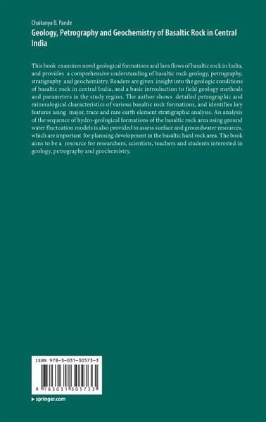 This book examines novel geological formations and lava flows of basaltic rock in India, and provides a comprehensive understanding of basaltic rock geology, petrography, stratigraphy and geochemistry. Readers are given insight into the geologic conditions of basaltic rock in central India, and a basic introduction to field geology methods and parameters in the study region. The author shows detailed petrographic and mineralogical characteristics of various basaltic rock formations, and identifies key features using major, trace and rare earth element stratigraphic analysis. An analysis of the sequence of hydro-geological formations of the basaltic rock area using ground water fluctuation models is also provided to assess surface and groundwater resources, which are important for planning development in the basaltic hard rock area. The book aims to be a resource for researchers, scientists, teachers and students interested in geology, petrography and geochemistry.