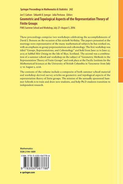 The contents of the volume include a composite of both summer school material and workshop-derived survey articles on geometric and topological aspects of the representation theory of finite groups. The mission of the annuallysponsored Summer Schools is to train and draw new students, and help Ph.D students transition to independent research.