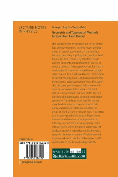 This volume offers an introduction, in the form of four extensive lectures, to some recent developments in several active topics at the interface between geometry, topology and quantum field theory. The first lecture is by Christine Lescop on knot invariants and configuration spaces, in which a universal finite-type invariant for knots is constructed as a series of integrals over configuration spaces. This is followed by the contribution of Raimar Wulkenhaar on Euclidean quantum field theory from a statistical point of view. The author also discusses possible renormalization techniques on noncommutative spaces. The third lecture is by Anamaria Font and Stefan Theisen on string compactification with unbroken supersymmetry. The authors show that this requirement leads to internal spaces of special holonomy and describe Calabi-Yau manifolds in detail. The last lecture, by Thierry Fack, is devoted to a K-theory proof of the Atiyah-Singer index theorem and discusses some applications of K-theory to noncommutative geometry. These lectures notes, which are aimed in particular at graduate students in physics and mathematics, start with introductory material before presenting more advanced results. Each chapter is self-contained and can be read independently.