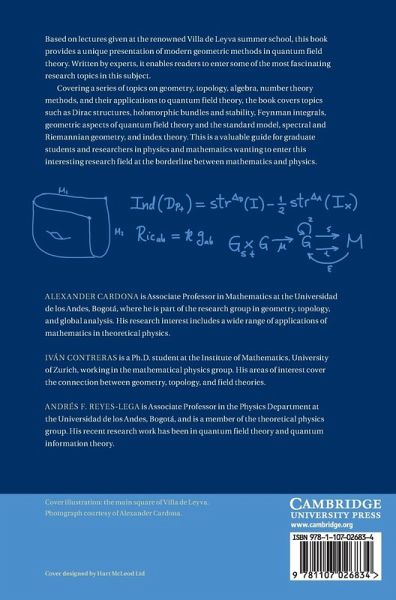 Introduction 1. A brief introduction to Dirac manifolds Henrique Bursztyn 2. Differential geometry of holomorphic vector bundles on a curve Florent Schaffhauser 3. Paths towards an extension of Chern-Weil calculus to a class of infinite dimensional vector bundles Sylvie Paycha 4. Introduction to Feynman integrals Stefan Weinzierl 5. Iterated integrals in quantum field theory Francis Brown 6. Geometric issues in quantum field theory and string theory Luis J. Boya 7. Geometric aspects of the standard model and the mysteries of matter Florian Scheck 8. Absence of singular continuous spectrum for some geometric Laplacians Leonardo A. Cano García 9. Models for formal groupoids Iván Contreras 10. Elliptic PDEs and smoothness of weakly Einstein metrics of Hölder regularity Andrés Vargas 11. Regularized traces and the index formula for manifolds with boundary Alexander Cardona and César Del Corral Index.