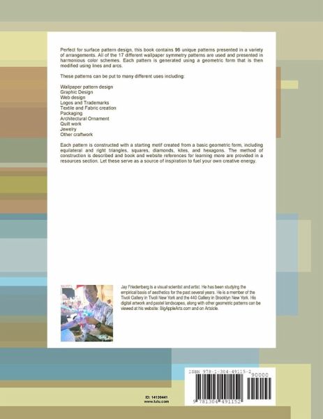Geometric wallpaper patterns for use in a wide variety of applications. Basic geometric shapes are modified and repeated to create intricate designs for use in web, graphic design and crafts. Ninety-six different patterns are presented in attractive color schemes. Perfect for surface pattern design. Use to create fabrics, quilts, ornament and more.