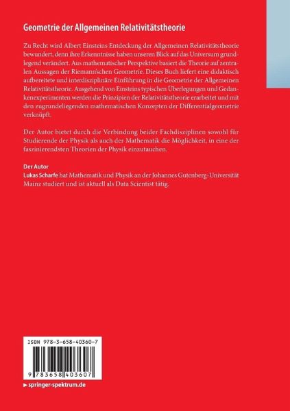 Der Autor bietet durch die Verbindung beider Fachdisziplinen sowohl für Studierende der Physik als auch der Mathematik die Möglichkeit, in eine der faszinierendsten Theorien der Physik einzutauchen.