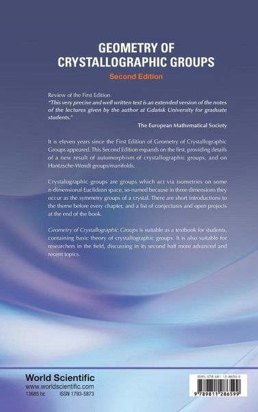It is eleven years since the First Edition of Geometry of Crystallographic Groups appeared. This Second Edition expands on the first, providing details of a new result of automorphism of crystallographic groups, and on Hantzsche-Wendt groups/manifolds. Crystalographic groups are groups which act via isometries on some n-dimensional Euclidean space, so-named because in three dimensions they occur as the symmetry groups of a crystal. There are short introductions to the theme before every chapter, and a list of conjectures and open projects at the end of the book. Geometry of Crystallographic Groups is suitable as a textbook for students, containing basic theory of crystallographic groups. It is also suitable for researchers in the field, discussing in its second half more advanced and recent topics.