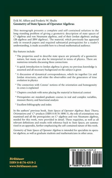 From the reviews: "The two books together provide a predominantly self-contained presentation of the geometric theory of operator algebra state spaces, culminating in the classification theorem of Alfsen, Hanche-Olsen and Shultz. Until now much of this material has been accessible only in the original papers, which makes the two volumes a welcome addition to the literature. . . . The result is a clear and comprehensive account. . . . the book describes a beautiful solution to a problem dating back to the foundations of the subject." -MATHEMATICAL REVIEWS "Notable results...are presented in this book in a unified way, with complete and enlightening proofs and comments. The authors have done fine work for the mathematical community, providing a valuable toolkit for researchers interested in non-associative structures, self-adjoint operator algebras, or areas of functional analysis or mathematical physics where aspects related to convexity and ordered spaces appear...." -ZENTRALBLATT MATH "The aim of the present book is to give a complete geometric description of the state spaces of operator algebras, meaning to give axiomatic characterizations of those convex sets that are state spaces ... . The book is divided into three parts. ... It is aimed to specialists in operator algebras, graduate students and mathematicians working in other areas (mathematical physics, foundation of quantum mechanics)." (S. Cobzas, Mathematica, Vol. 46 (2), 2004) "The authors of this monograph present a complete and self-contained solution to the long-standing problem of giving a geometric description of state spaces ... . There also are an Appendix, a Bibliography containing 137 references, and an Index. The material, which previously has appeared only in research papers ... is made accessible here to a broad mathematical audience. ... The book under review is intended for specialists in operator algebras, as well as graduate students and mathematicians in other areas." (Radu Iordanescu, Revue Roumaine de Mathématiques Pures et Appliquées, Vol. XLIX (3), 2004)