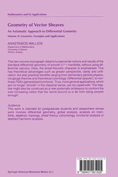 Audience: This work is intended for postgraduate students and researchers whose work involves differential geometry, global analysis, analysis on manifolds, algebraic topology, sheaf theory, cohomology, functional analysis or abstract harmonic analysis.