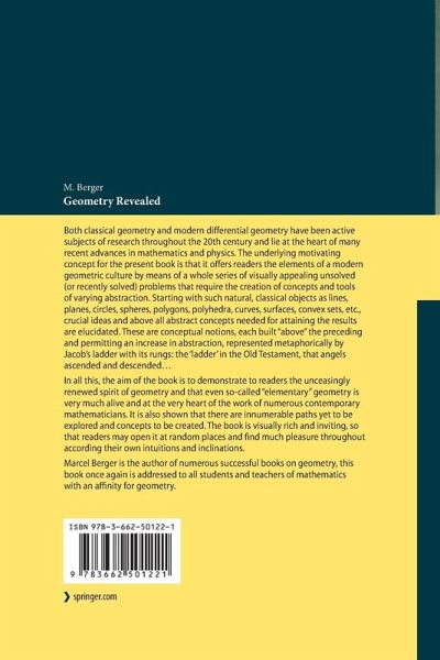 Both classical geometry and modern differential geometry have been active subjects of research throughout the 20th century and lie at the heart of many recent advances in mathematics and physics. The underlying motivating concept for the present book is that it offers readers the elements of a modern geometric culture by means of a whole series of visually appealing unsolved (or recently solved) problems that require the creation of concepts and tools of varying abstraction. Starting with such natural, classical objects as lines, planes, circles, spheres, polygons, polyhedra, curves, surfaces, convex sets, etc., crucial ideas and above all abstract concepts needed for attaining the results are elucidated. These are conceptual notions, each built "above" the preceding and permitting an increase in abstraction, represented metaphorically by Jacob's ladder with its rungs: the 'ladder' in the Old Testament, that angels ascended and descended...