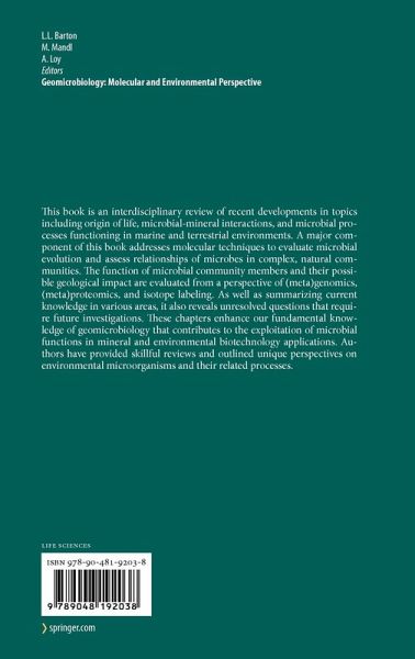 The interaction of microorganisms with geological activities results in processes influencing development of the Earth's geo- and biospheres. In assessing these microbial functions, scientists have explored short- and longterm geological changes attributed to microorganisms and developed new approaches to evaluate the physiology of microbes including microbial interaction with the geological environment. As the field of geomicrobiology developed, it has become highly interdisciplinary and this book provides a review of the recent developments in a cross section of topics including origin of life, microbial-mineral interactions and microbial processes functioning in marine as well as terrestrial environments. A major component of this book addresses molecular techniques to evaluate microbial evolution and assess relationships of microbes in complex, natural c- munities. Recent developments in so-called 'omics' technologies, including (meta) genomics and (meta)proteomics, and isotope labeling methods allow new insights into the function of microbial community members and their possible geological impact. While this book summarizes current knowledge in various areas, it also reveals unresolved questions that require future investigations. Information in these chapters enhances our fundamental knowledge of geomicrobiology that contributes to the exploitation of microbial functions in mineral and environmental biotechn- ogy applications. It is our hope that this book will stimulate interest in the general field of geomicrobiology and encourage others to explore microbial processes as applied to the Earth.