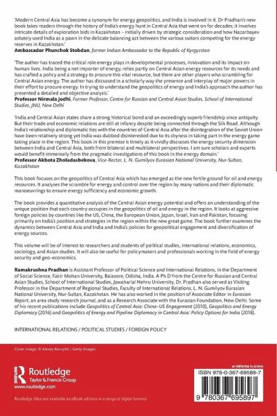 List of Figures. List of Tables. Acknowledgements. Preface. List of Abbreviation and Acronyms. Introduction. 1. Geopolitics of Energy and Energy Security 2. Geopolitics of Energy in Central Asia 3. India-Central Asia Relations: Looking Back and Looking Ahead 4. India's Energy Trajectory 5. India-Central Asia and the Energy Quest 6. New Great Game and Silk Road Diplomacy 7. Transit Routes between India and Central Asia 8. Conclusion. Bibliography. Annexes. Index