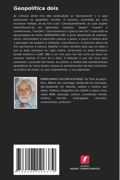 As crónicas deste livro dão continuidade ao "pensamento" e à ação americanos na geopolítica mundial. O primeiro, acometido por uma esclerose múltipla, foi de mal a pior. Consequentemente, as suas acções intensificaram-se em agressões, invasões, "golpes" "suaves" e convencionais, "sanções". Consubstancial à "guerra sem fim" a que aludi na apresentação da minha GEOPOLÍTICA UM. A ânsia desastrada de violentar, cercar, desmembrar e exterminar culturas e povos, a quem a história deve a passagem da barbárie à civilização, intensificou-se. A estrutura básica do livro permanece a mesma. Detalhei o índice temático para que se saiba o que se pode encontrar em cada crónica. Acrescentei os eixos temáticos Estado Islâmico e LGBT. Não é um livro para ser lido como se fosse um romance realista. É livre de o fazer. A intenção é que ele sirva para questionar o presente dos factos, os actores, a história dos acontecimentos geopolíticos do nosso tempo; porque os acontecimentos de hoje encontram, na história de ontem, os seus antecedentes, a sua explicação.