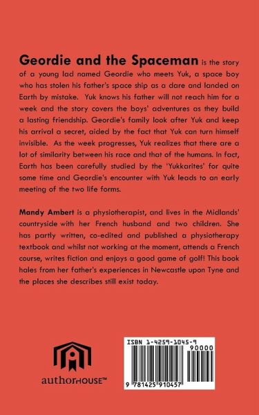 Geordie and the Spaceman is the story of a young lad named Geordie who meets Yuk, a space boy who has stolen his father's space ship as a dare and landed on Earth by mistake. Yuk knows his father will not reach him for a week and the story covers the boys' adventures as they build a lasting friendship. Geordie's family look after Yuk and keep his arrival a secret, aided by the fact that Yuk can turn himself invisible. As the week progresses, Yuk realizes that there are a lot of similarity between his race and that of the humans. In fact, Earth has been carefully studied by the 'Yukkarites' for quite some time and Geordie's encounter with Yuk leads to an early meeting of the two life forms.