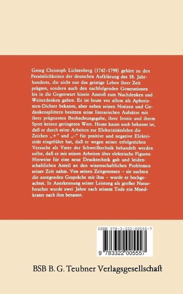 I:,ichtenbergs Schriften können wir uns als der wunderbarsten Wün schelrute bedienen; wo er einen Spaß macht, liegt ein Problem ver borgen. Goethe: Maximen und Reflexionen Georg Christoph Lichtenberg gehört zu den Persönlichkeiten der deutschen Aufklärung des 18. Jahrhunderts, die nicht nur das gei stige Leben ihrer Zeit prägten, sondern auch den darauffolgenden Generationen bis in die Gegenwart hinein Anstoß gaben zum Nach denken und Weiterdenken. Kaum einer der bedeutenden Zeitgenossen ging achtlos an den natur wissenschaftlichen und literarischen Arbeiten des verwachsenen Physikprofessors in Göttingen vorüber. Goethe, Lessing, Volta, Scarpa und Lavaler kamen eigens nach Göt tingen, um sich mit ihm in Gesprächen über physikalische, philoso phische und literarische Fragen auszutauschen. :\lit Goethe, Kant und Nicolai verband ihn ein Briefwechsel, mit Geol"g FOI .. ~ler arbei tete er zusammen, Herder und Klopstocl~ suchten die Begegnung mit ihm, und Wilhelm und Alexander von Humbohlt verehrten in ihm den bedeutenden Hochschullehrer. Doch nicht nur für seine Zeitgenossen, die den Kontakt mit ihm suchten, war er ein Berater und Kritiker, dessen Anregungen pro duktiv für sie waren. Auch Heine, Hebbel, Sc1lOpenhauer, Toistoi, Freud, Tucholsky, Karl Kraus, Albert Einstein und Thomas Mann gehörten zu dem großen Kreis der Lichtenberg-Yerehrer. Sein Name hat in der Geschichte des deutschen Geisteslebens vor allem als der eines hervorragenden Schriftstellers, dessen einzelne Notizen und Gedankensplitter als Aphorismen weltliterarischen Rang erhielten, Eingang gefunden. So mag er mit seinem Witz und Spott, seiner Ironie und prägnanten Beobachtungsgabe, die sich in den literarischen Arbeiten zeigen, auch den meisten Menschen be kannt sein.
