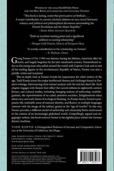 Georg Forster (1754-1794) was famous during his lifetime, notorious after his death, and largely forgotten by the later nineteenth century. Remembered today as the young man who sailed around the world with Captain Cook and as one of the leading figures in the revolutionary Republic of Mainz, Forster was also a prolific writer and translator who left behind two travelogues, a series of essays on diverse topics, and numerous letters. This in-depth look at Forster's work and life reveals his importance for other writers of the age. Todd Kontje traces the major intellectual themes and challenges found in Forster's writings, interweaving close textual analysis with his rich but short life. Each chapter engages with themes that reflect the current debates in eighteenth-century literary and cultural studies, including changing notions of authorship, multilingualism, the representation of so-called primitive societies, Enlightenment ideas about race, and early forms of ecological thinking. As Kontje shows, Forster's peripatetic life, malleable sense of national identity, and fluency in multiple languages contrast with the image of the solitary genius in the "age of Goethe." In this way, Forster provides a different model of authorship and citizenship better understood in the context of an increasingly globalized world. Compellingly argued and engagingly written, this book restores Forster to his rightful place within the German literary tradition, and in so doing, it urges us to reconsider the age of Goethe as multilingual and malleable, local and cosmopolitan, dynamic and decentered. It will be welcomed by specialists in German studies and the Enlightenment.