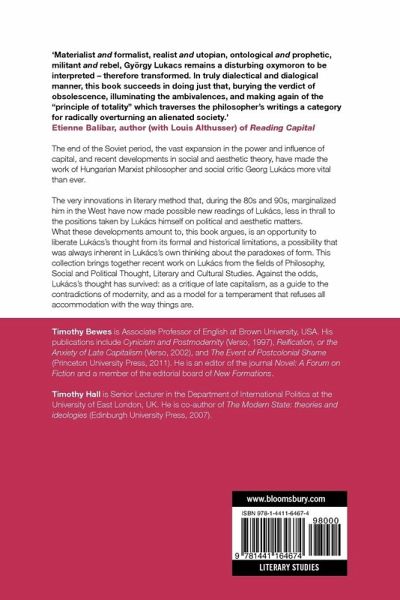 The end of the Soviet period, the vast expansion in the power and influence of capital, and recent developments in social and aesthetic theory, have made the work of Hungarian Marxist philosopher and social critic Georg Lukács more vital than ever. The very innovations in literary method that, during the 80s and 90s, marginalized him in the West have now made possible new readings of Lukács, less in thrall to the positions taken by Lukács himself on political and aesthetic matters. What these developments amount to, this book argues, is an opportunity to liberate Lukács's thought from its formal and historical limitations, a possibility that was always inherent in Lukács's own thinking about the paradoxes of form. This collection brings together recent work on Lukács from the fields of Philosophy, Social and Political Thought, Literary and Cultural Studies. Against the odds, Lukács's thought has survived: as a critique of late capitalism, as a guide to the contradictions of modernity, and as a model for a temperament that refuses all accommodation with the way things are.