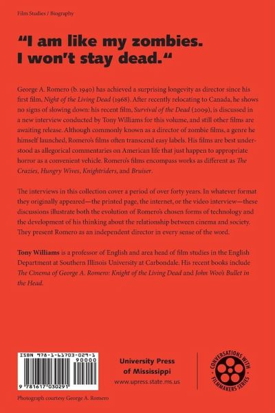 George A. Romero (b. 1940) has achieved a surprising longevity as director since his first film, Night of the Living Dead (1968). After recently relocating to Canada, he shows no signs of slowing up: his recent film, Survival of the Dead (2009), is discussed in a new interview conducted by Tony Williams for this volume, and still other films are awaiting release. Although commonly known as a director of zombie films, a genre he himself launched, Romero's films often transcend easy labels. His films are best understood as allegorical commentaries on American life that just happen to appropriate horror as a convenient vehicle. Romero's films encompass works as different as The Crazies, Hungry Wives, Knightriders, and Bruiser. The interviews in this collection cover a period of over forty years. In whatever format they originally appeared-the printed page, the internet, or the video interview-these discussions illustrate both the evolution of Romero's chosen forms of technology and the development of his thinking about the relationship between cinema and society. They present Romero as an independent director in every sense of the word.
