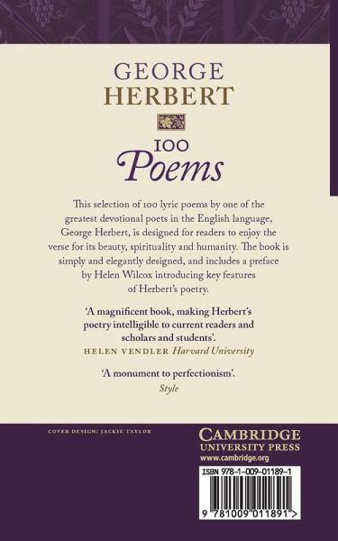 This selection of one hundred poems by one of the greatest devotional poets in the English language, George Herbert, is designed for readers to enjoy the verse for its beauty, spirituality and humanity. The book is simply and elegantly designed, and includes a preface introducing key features of Herbert's poetry.