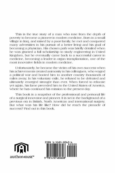 This is the true story of a man who rose from the depth of poverty to become a pioneer in modern medicine. Born in a small village in Iraq, and raised by a poor family, he met and conquered many adversities in his pursuit of a better living and his goal of becoming a physician. His chosen path was briefly derailed when he was granted a full scholarship to study engineering in United Kingdom, but he eventually came back to a successful career in medicine, becoming a leader in organ transplantation, one of the most innovative fields in modern medicine. Unfortunately, he became the victim of his own success when his achievements created animosity in his colleagues, who waged a political war and booted him to another country thousands of miles away. In his voluntary exile, he refused to be defeated and ultimately emerged stronger than ever. When forced to relocate yet again, his fame preceded him to the United States of America, where he has continued his mission to the present day. This book is a snapshot of the professional and personal life of a surgical innovator and pioneer. It is set in the background of a previous era in British, North American and international surgery. But what was his life like? How did he reach the pinnacle of success? Find out in this book.