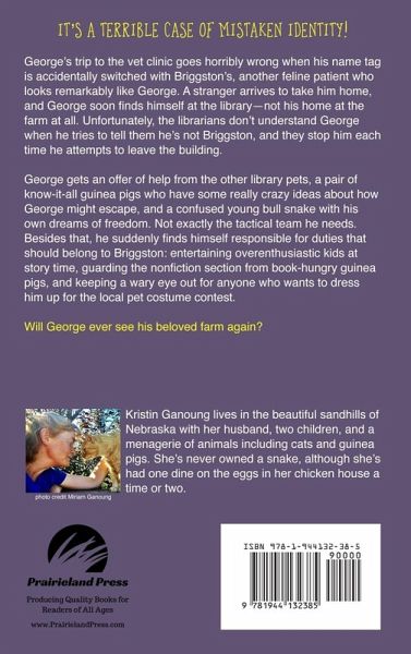 It's a case of mistaken identity! When George is sent to the local veterinary clinic to have his broken leg fixed, there is a terrible mixup. Instead of being returned to his beloved farm, George finds himself at the town library. How will the farm survive without George, the head of their farm security? And how will the George survive life inside the library, with a snake, two guinea pigs, and a group of kids determined to dress him up as the main character in each book they read? Join in on the fun as George Meets His Match!