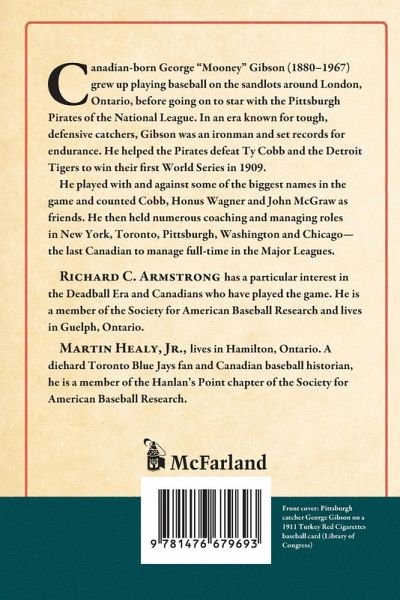 Canadian-born George "Mooney" Gibson (1880-1967) grew up playing baseball on the sandlots around London, Ontario, before going on to star with the Pittsburgh Pirates of the National League. In an era known for tough, defensive catchers, Gibson was an ironman and set records for endurance. He helped the Pirates defeat Ty Cobb and the Detroit Tigers to win their first World Series in 1909. He played with and against some of the biggest names in the game and counted Cobb, Honus Wagner and John McGraw as friends. He then held numerous coaching and managing roles in New York, Toronto, Pittsburgh, Washington and Chicago--the last Canadian to manage full-time in the Major Leagues.