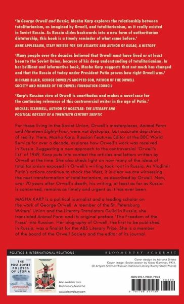 For those living in the Soviet Union, Orwell's masterpieces, Animal Farm and Nineteen Eighty-Four, were not dystopias, but accurate depictions of reality. Here, the Orwell scholar and expert on Russian politics, Masha Karp - Russian Features Editor at the BBC World Service for over a decade - explores how Orwell's work was received in Russia, when it percolated into the country even under censorship. Suggesting a new approach to the controversial 'Orwell's list' of 1949, Karp puts into context the articles and letters written by Orwell at the time. She sheds light on how the ideas of totalitarianism exposed in Orwell's writing took root in Russia and, in doing so, helps us to understand the contemporary political reality. As Vladimir Putin's actions continue to shock the West, it is clear we are witnessing the next transformation of totalitarianism, as predicted and described by Orwell. Now, over 70 years after Orwell's death, his writing, at least as far as Russia is concerned, remains as timely and urgent as it has ever been.