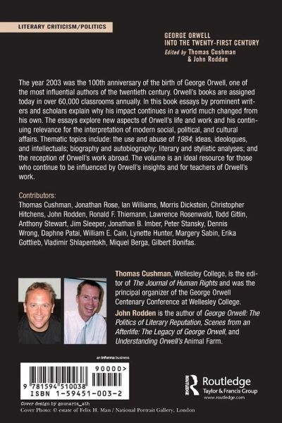 Introduction George Orwell into the Twenty-first Century, Thomas Cushman; Part I The Use and Abuse of Nineteen Eighty-Four; Chapter 1 Abolishing the Orgasm: Orwell and the Politics of Sexual Persecution, Jonathan Rose; Chapter 2 In Defense of Comrade Psmith: The Orwellian Treatment of Orwell, Ian Williams; Chapter 3 Hope against Hope: Orwell's Posthumous Novel, Morris Dickstein; Part II Ideas, Ideologies, and Intellectuals; Chapter 4 George Orwell and the Liberal Experience of Totalitarianism, Christopher Hitchens; Chapter 5 On the Ethics of Admiration-and Detraction, John Rodden; Chapter 6 The Public Intellectual as Connected Critic: George Orwell and Religion, Ronald F. Thiemann; Chapter 7 Orwell, Pacifism, Pacifists, Lawrence Rosenwald; Chapter 8 Varieties of Patriotic Experience, Todd Gitlin; Chapter 9 Vulgar Nationalism and Insulting Nicknames: George Orwell's Progressive Reflections on Race, Anthony Stewart; Chapter 10 Orwell's "Smelly Little Orthodoxies"-and Ours, Jim Sleeper; Chapter 11 Orwell in an Age of Celebrity, Jonathan B. Imber; Part III Of Biography and Autobiography; Chapter 12 Writing about Orwell: A Personal Account, Peter Stansky; Chapter 13 Orwell: Unmasker of Underlying Realities, Dennis Wrong; Chapter 14 Third Thoughts about Orwell?, Daphne Patai; Part IV Literary and Stylistic Issues; Chapter 15 Orwell's Perversity: An Approach to the Collected Essays, William E. Cain; Chapter 16 Prescience and Resilience in George Orwell's Political Aesthetics, Lynette Hunter; Chapter 17 Outside/Inside: Searching for Wigan Pier, Margery Sabin; Chapter 18 Orwell's Satirical Vision on the Screen: The Film Versions of Animal Farm and Nineteen Eighty-Four, Erika Gottlieb; Part V Orwell Abroad; Chapter 19 George Orwell: Russia's Tocqueville, Vladimir Shlapentokh; Chapter 20 May Days in Barcelona: Orwell, Langdon-Davies, and the Cultural Memory of War, Miquel Berga; Chapter 21 From Ingsoc to Capsoc: Perceptions of Orwell in France, Gilbert Bonifas;