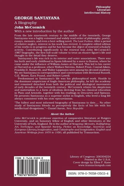 From the late nineteenth century to the middle of the twentieth, George Santayana was a highly esteemed and widely read writer of philosophy, poetry, essays, memoirs, and even a best-selling novel, The Last Puritan. After a period of relative neglect, interest in his work has revived. A complete edited edition of his works is in progress and he has become the object of renewed scholarly activity. Contributing significantly to the renewal was John McCormick's 1987 biography, the first full-scale volume to treat an elusive figure's life and thought in the detail they deserve.