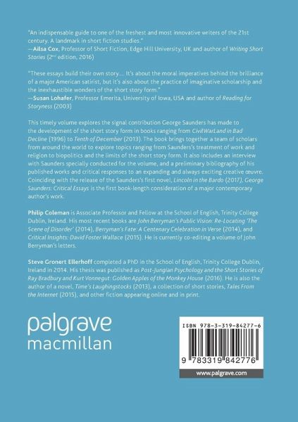 .- 1 "A Job to Do": George Saunders on, and at, Work.- 2 Horning In: Language, Subordination and Freedom in the Short Fiction of George Saunders.- 3 Language Between Lyricism and Corporatism: George Saunders's New Sincerity.- 4 "Hope that, in future, all is well": American Exceptionalism and Hopes for Resistance in Two Stories by George Saunders.- 5 Hanging by a Thread in the Homeland: The Four Institutional Monologues of George Saunders.- 6 Biopolitical Dystopias, Bureaucratic Carnivores, Synthetic Primitives: "Pastoralia" as Human Zoo.- 7 Ghosts and Theme Parks: The Supernatural and the Artificial in George Saunders's Short Stories.- 8 The Absent Presence of the Deus Absconditus in the Work of George Saunders.- 9 Narrative Empathy in George Saunders's Short Fiction.- 10 Cruel Inventions: George Saunders's Literary Darkenfloxx(TM).- 11 Dreaming and Realizing "The Semplica Girl Diaries": A Post-Jungian Reading.- 12 Everyday Zombies: Ethics and the Contemporary in George Saunders's "Sea Oak" and "Brad Carrigan, American".- 13 "Third Person Ventriloquism": Microdialogues and Polyphony in George Saunders's "Victory Lap".- 14 "A little at a time. And Iteratively": A Conversation with George Saunders.