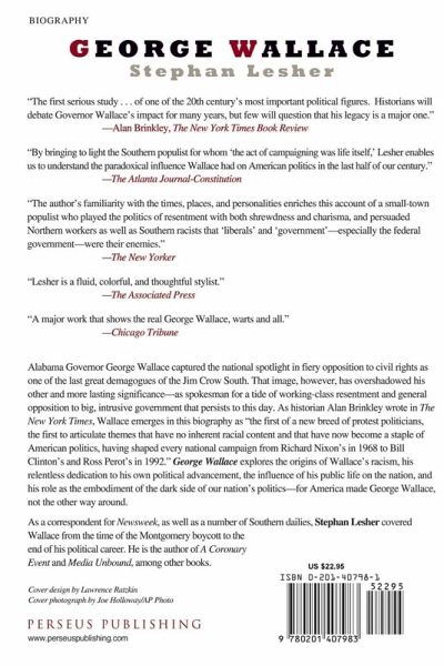 Alabama Governor George Wallace captured the national spotlight in fiery opposition to Civil Rights. But biographer Stephan Lesher suggests Wallace's more lasting significance is that of working class spokesman against the intrusion of "big" government. "The first serious study of the whole of Mr. Wallace's career".--The New York Times Book Review.